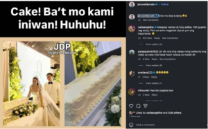 Kasabay ng litrato, nilagyan ni Janus ng caption: “Cake! Ba’t mo kami iniwan! Huhuhu! Sisiw na lang kulang.” May kasama pang smiley at peace emojis. Sa isang iglap, nag-viral ang post, dahil tinutok ni Janus ang popular na komento ng ibang netizens na ang wedding cake ay parang hugis kabaong.